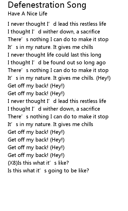 | 歌曲 | Defenestration Song |