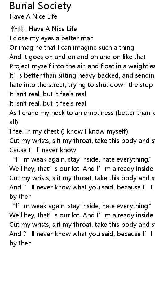 | [00:00.000] | zuo qu : Have A Nice Life |