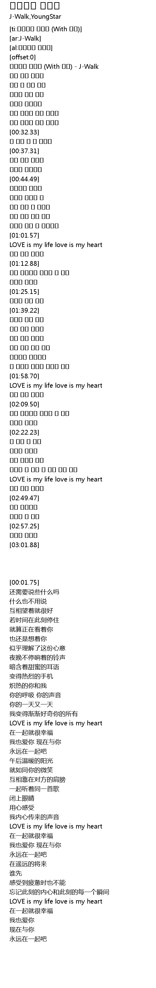 | [00:01.75] | 무슨말이 필요해 (With 주이) - J-Walk |