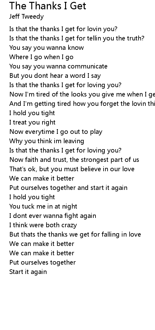 But thats the thanks we get for falling in love |