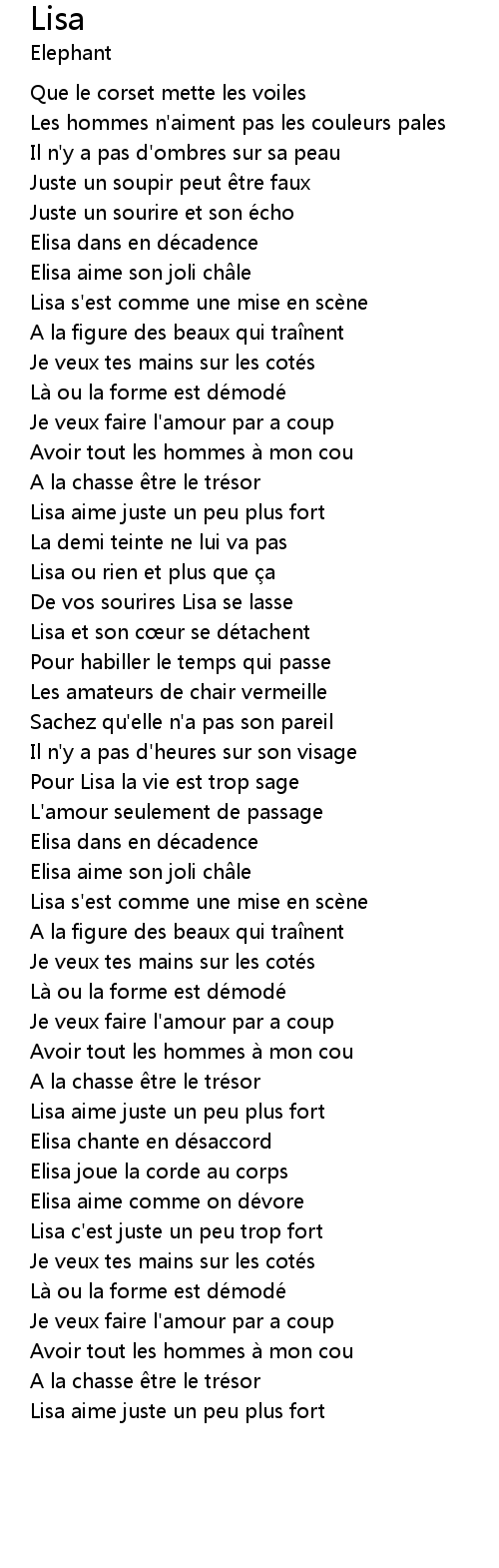| [02:03.07] | Lisa s' est comme une mise en sce ne |