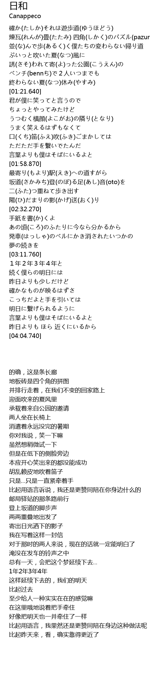 | 歌曲 | 日和 |