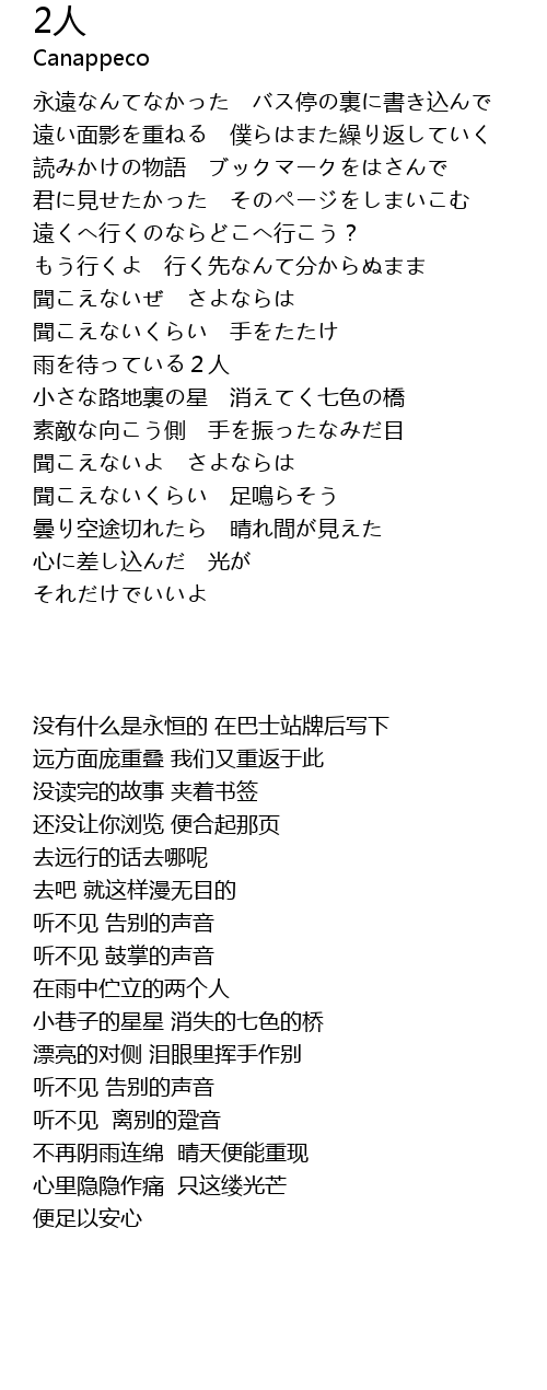 | 歌曲 | 2人 |