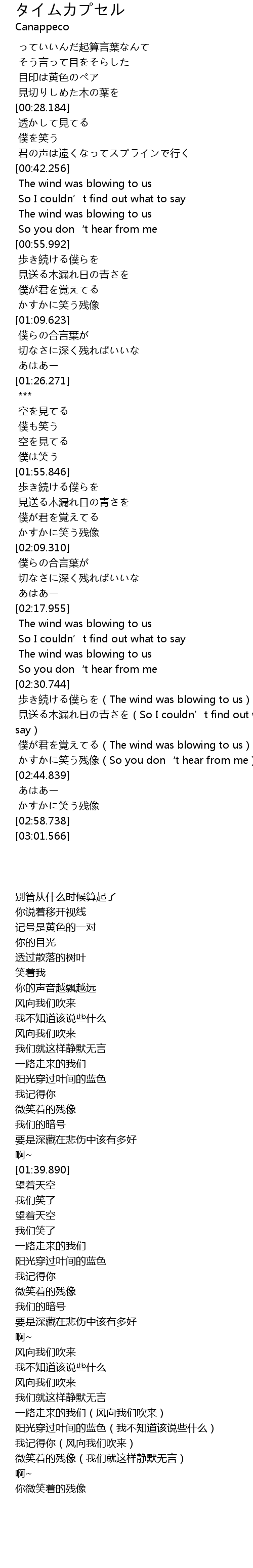 | [02:40.552] | 僕が君を覚えてる(The wind was blowing to us) |