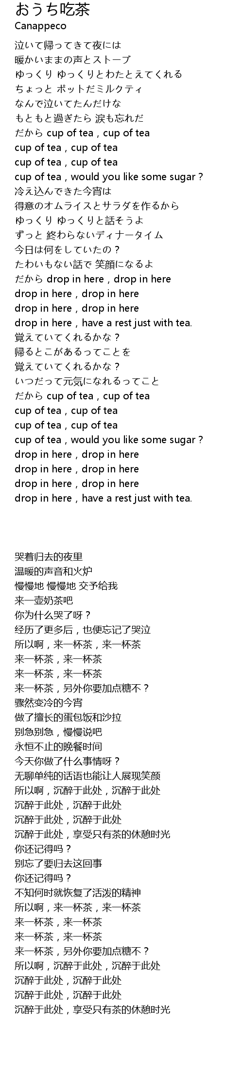 | [03:17.290] | cup of tea,would you like some sugar? |