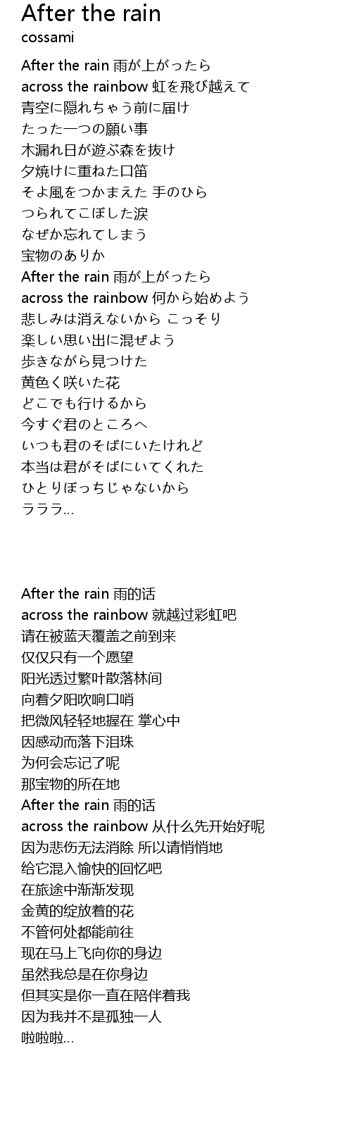 | [00:23.960] | across the rainbow hóng fēi yuè |