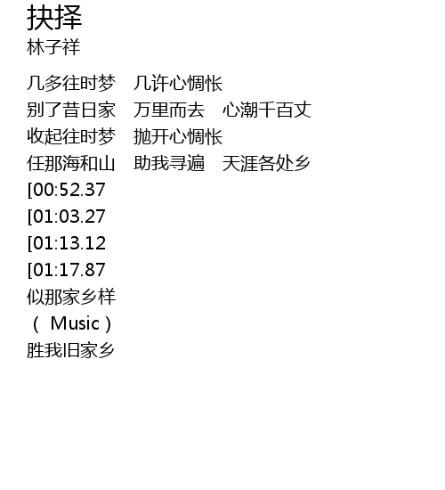 | [00:41.64] | 任那海和山 助我寻遍 天涯各处乡 |