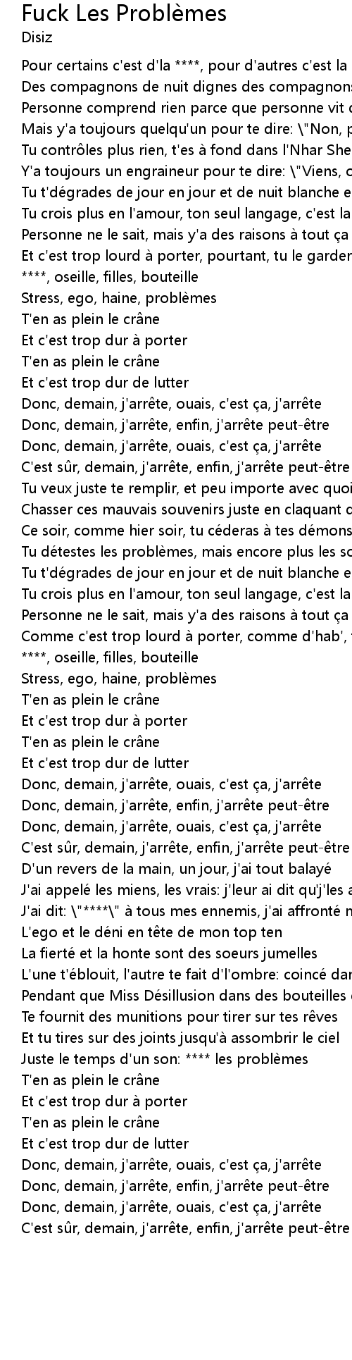 | J'ai dit: \"****\" à tous mes ennemis, j'ai affronté mes problèmes | |