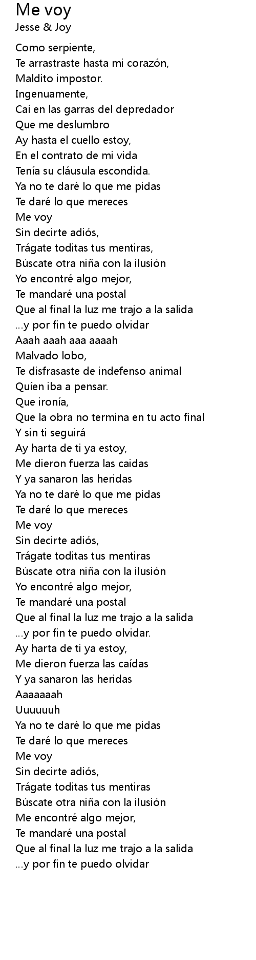 | 歌曲 | Me voy |