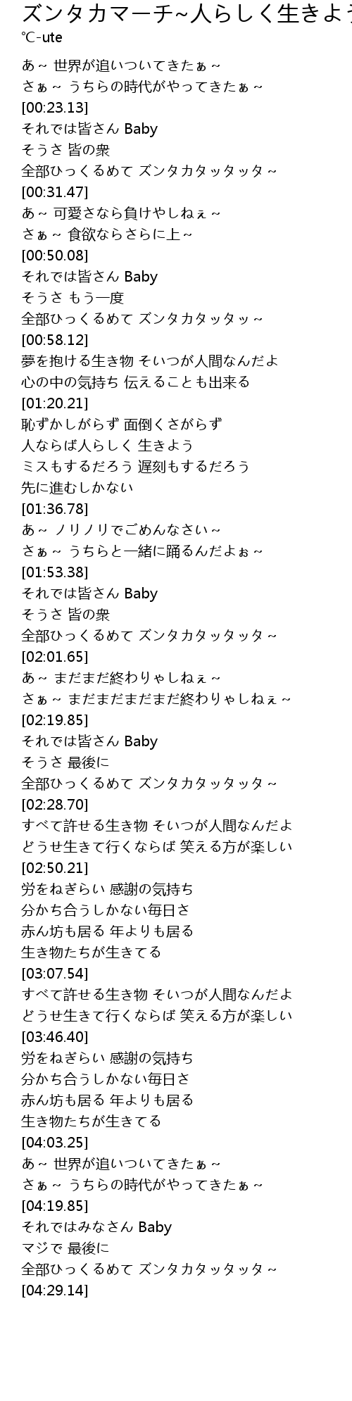 | [01:58.42] | 全部ひっくるめて ズンタカタッタッタ~ |