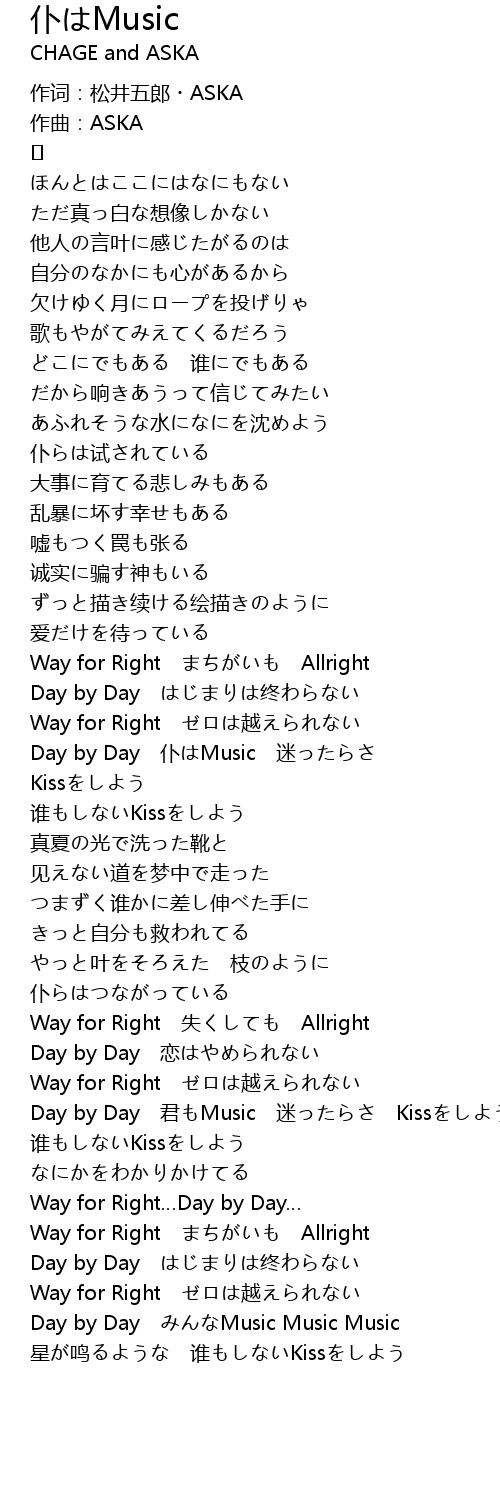 | Day by Day 君もMusic 迷ったらさ Kissをしよう | |