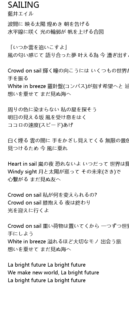 | Crowd on sail 輝く瞳の向こうには いくつもの世界が ほら 手を振る | |