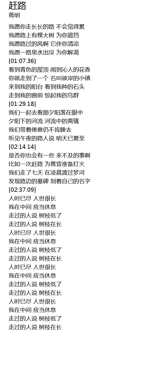 | [00:45.42] | 我愿你走长长的路 不会觉得累 |