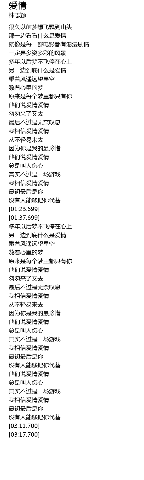 | [02:55.700] | 我相信爱情爱情 |