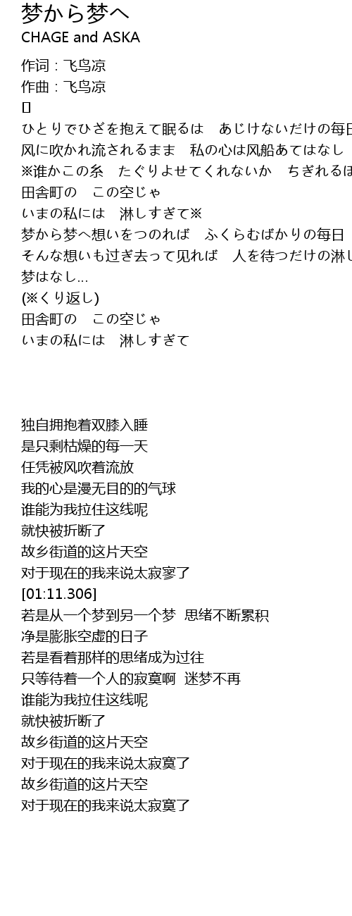 | [01:56.010] | 只等待着一个人的寂寞啊 迷梦不再 |