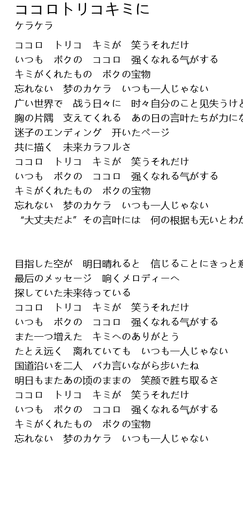 | 广い世界で 战う日々に 时々自分のこと见失うけど | |