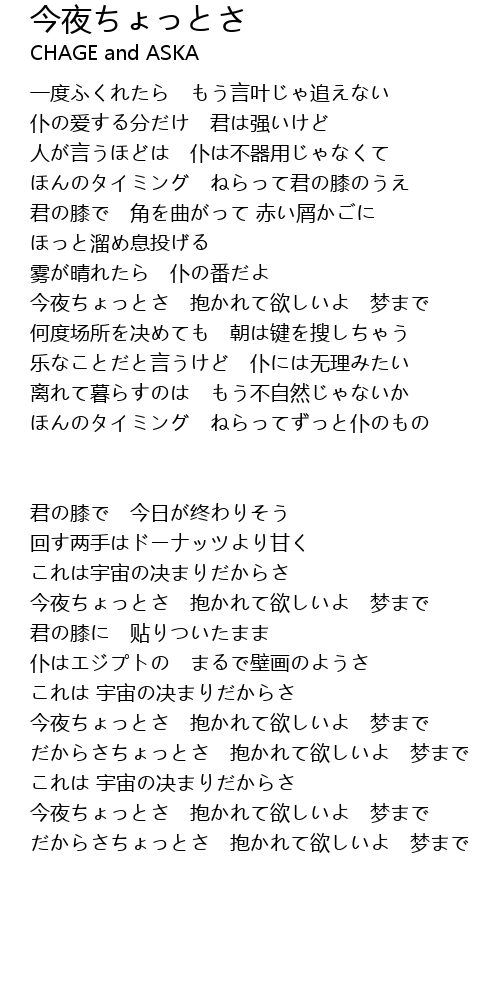 | 今夜ちょっとさ 抱かれて欲しいよ 梦まで | |
