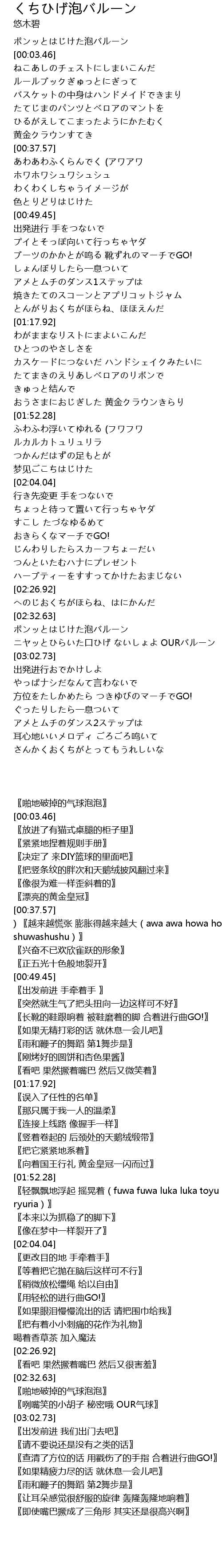 | [00:37.70] | あわあわふくらんでく (アワアワ ホワホワシュワシュシュ |