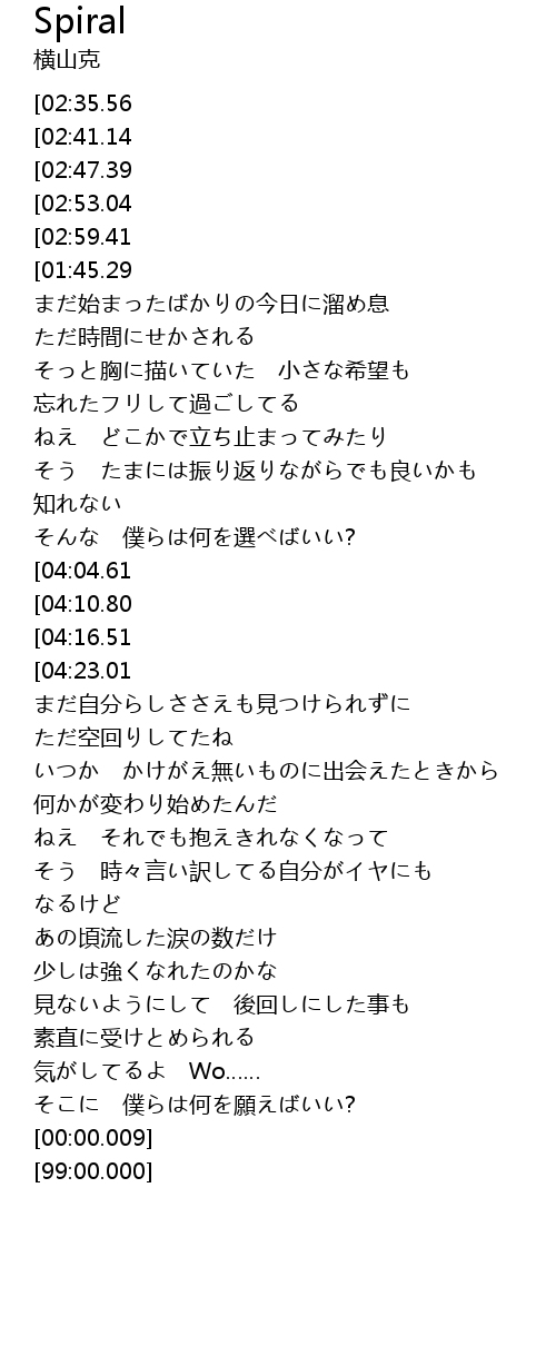 | [00:28.11][01:45.29][03:02.70][04:26.21] | 中川翔子-Spiral |