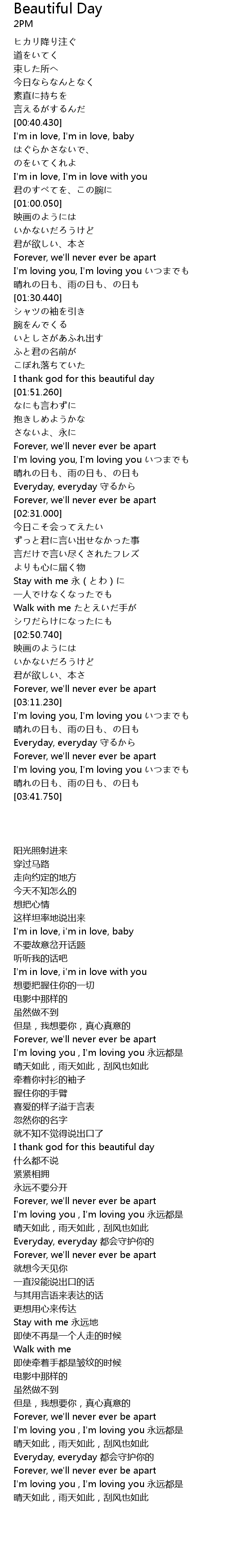 | [02:26.090] | Forever, we' ll never ever be apart |