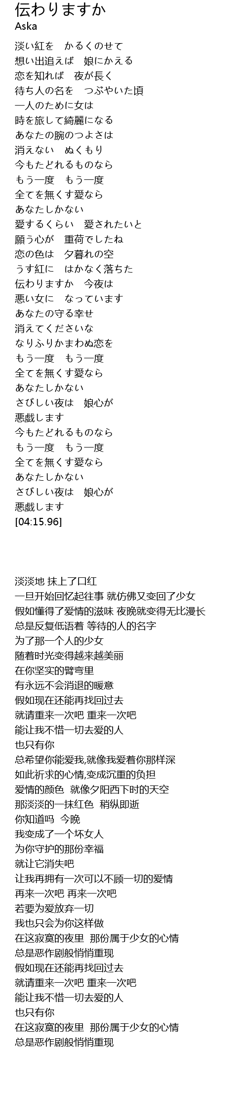 | [00:43.48] | 待ち人の名を つぶやいた頃 |