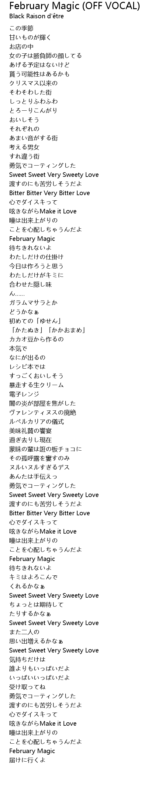 | 歌曲 | February Magic (OFF VOCAL) |