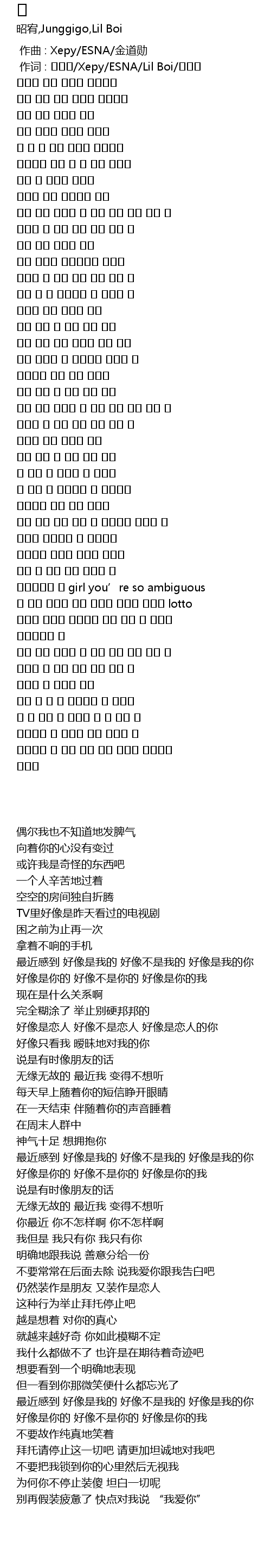 | [02:36.600] | 궁금해지는 걸 girl you’re so ambiguous |