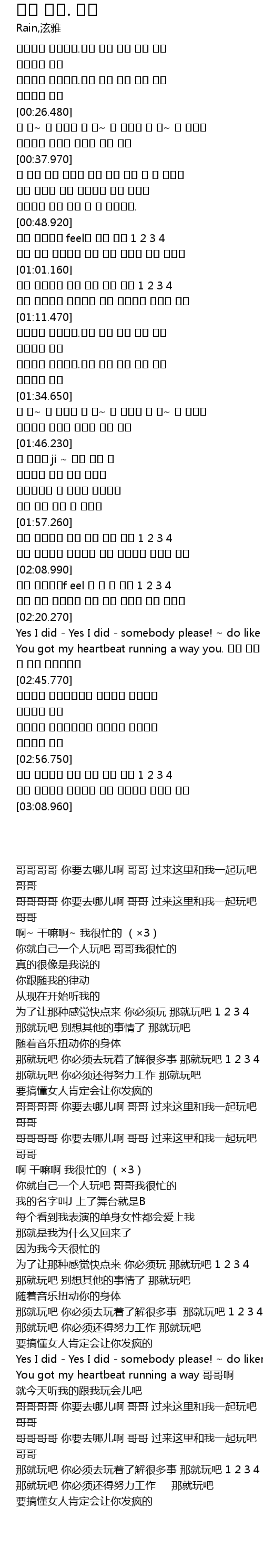 | [02:34.430] | Yes I did - Yes I did - somebody please! ~ do likeme. do like me. |