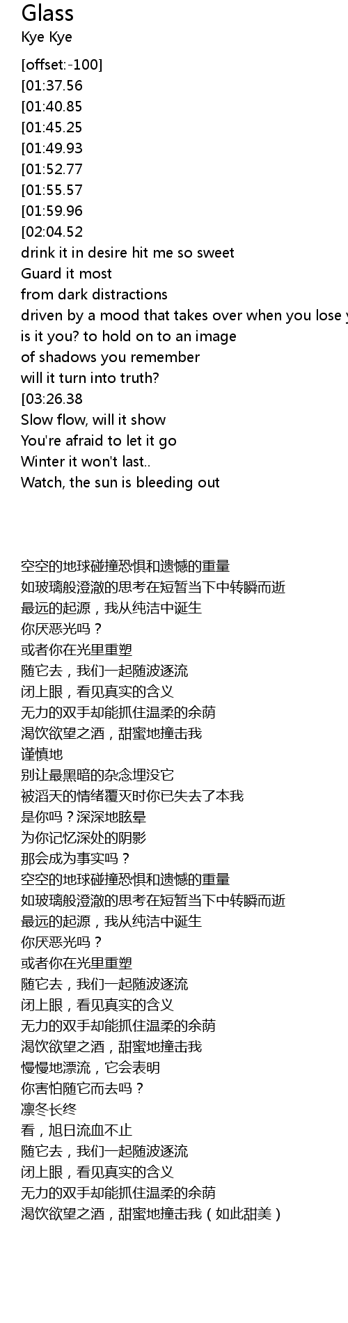 | [00:24.06][01:40.85] | Glass clear thoughts for the shortest slight moments |