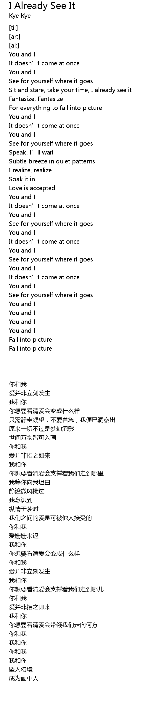 | [00:44.11] | Sit and stare, take your time, I already see it |