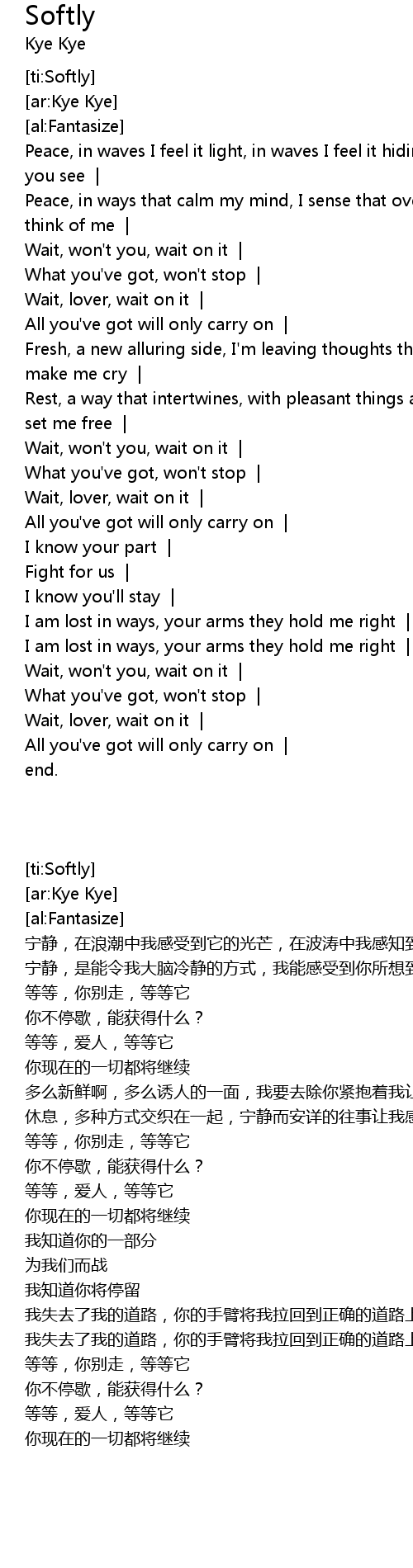 Peace, in waves I feel it light, in waves I feel it hiding me in what you see | |