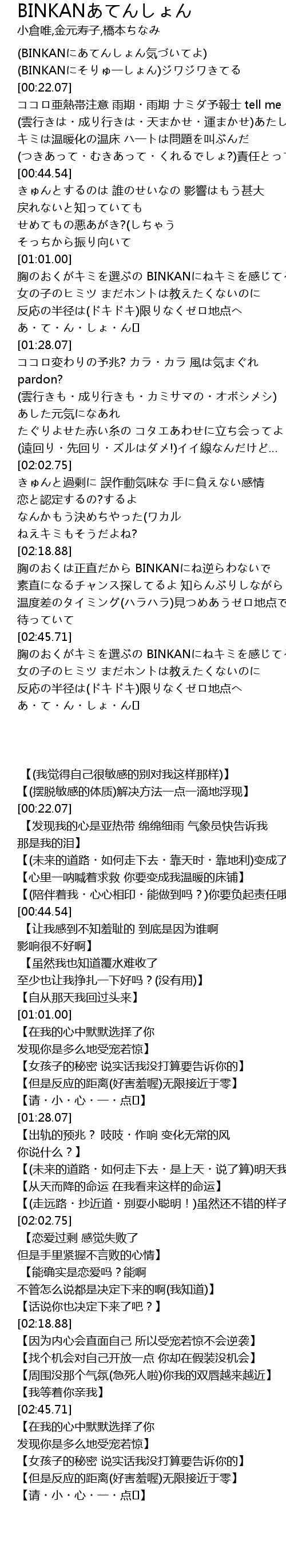 | [00:00.00] | (BINKANにあてんしょん気づいてよ) |