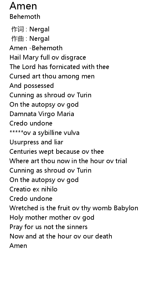 | [00:00.580] | Amen Behemoth |