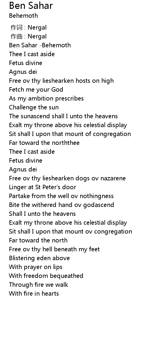 | [00:00.00] | Ben Sahar Behemoth |