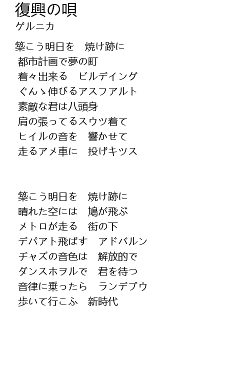| 歌曲 | 復興の唄 |