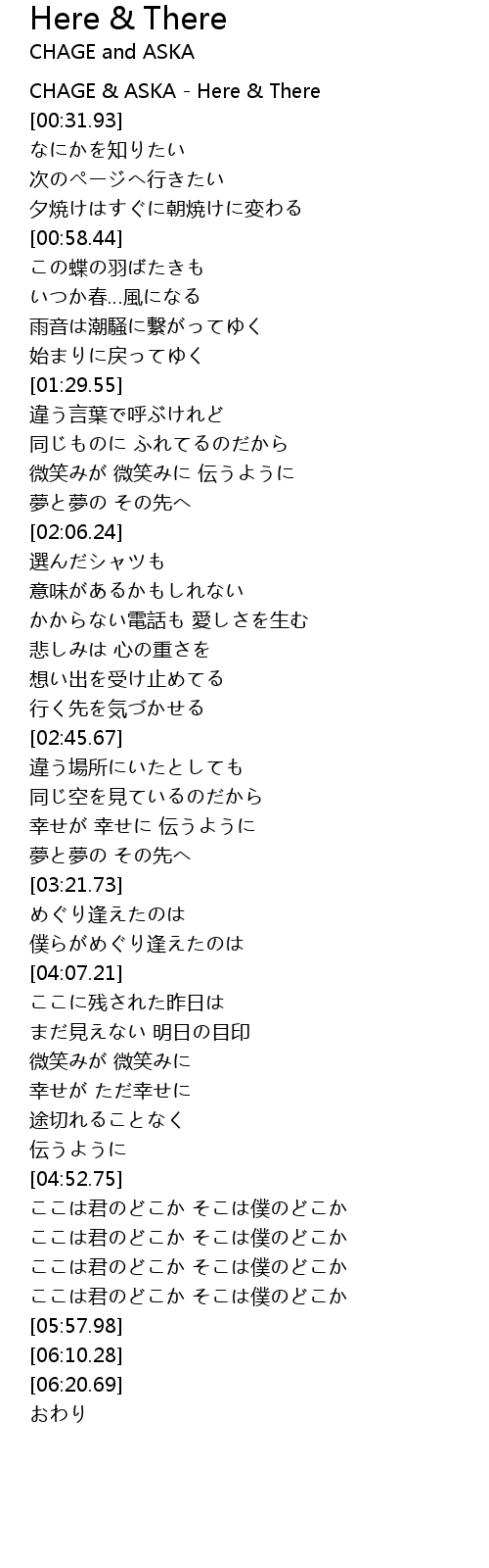 | [00:00.00] | CHAGE & ASKA - Here & There |