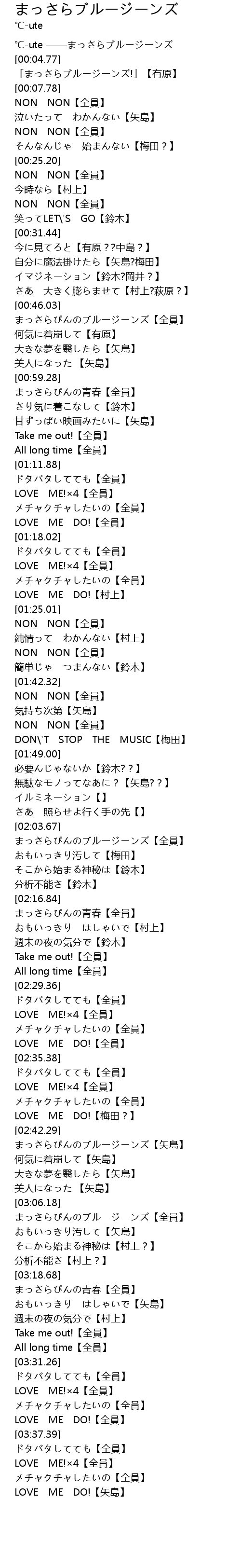 | [00:03.00] | ℃-ute ——まっさらブルージーンズ |