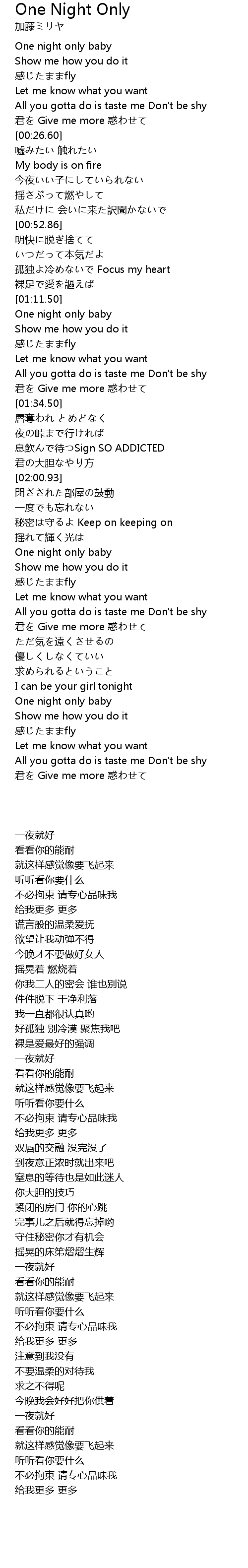 | [02:58.77] | One night only baby |