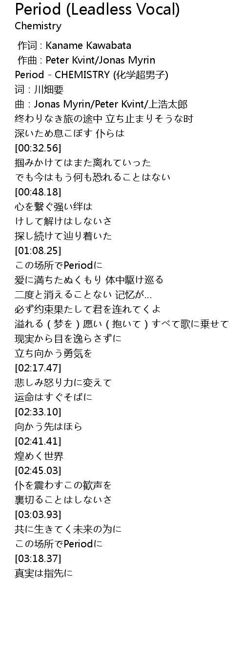 | [00:00.00] | Period - CHEMISTRY (化学超男子) |