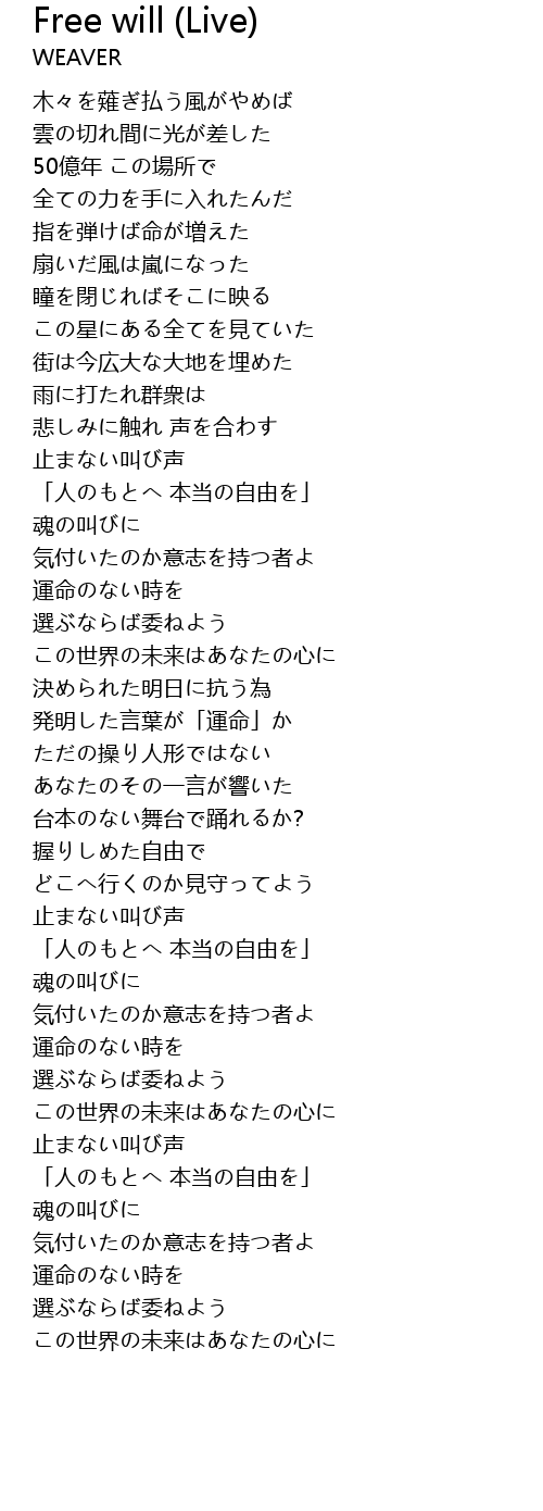 | 歌曲 | Free will (Live) |
