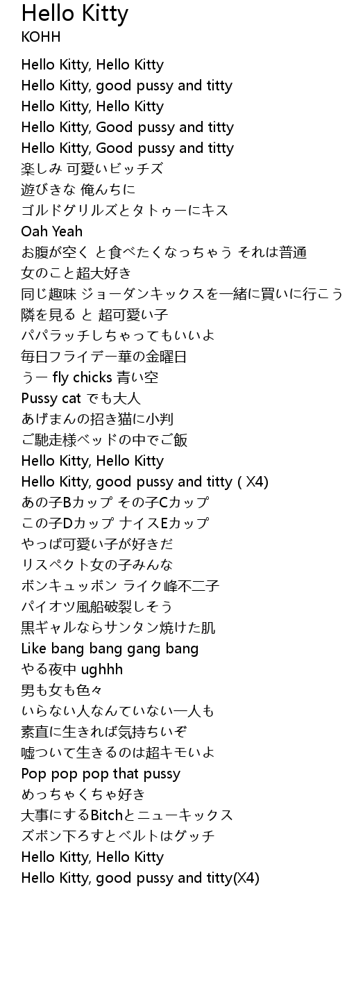 | [00:18.18] | Hello Kitty, Good pussy and titty |