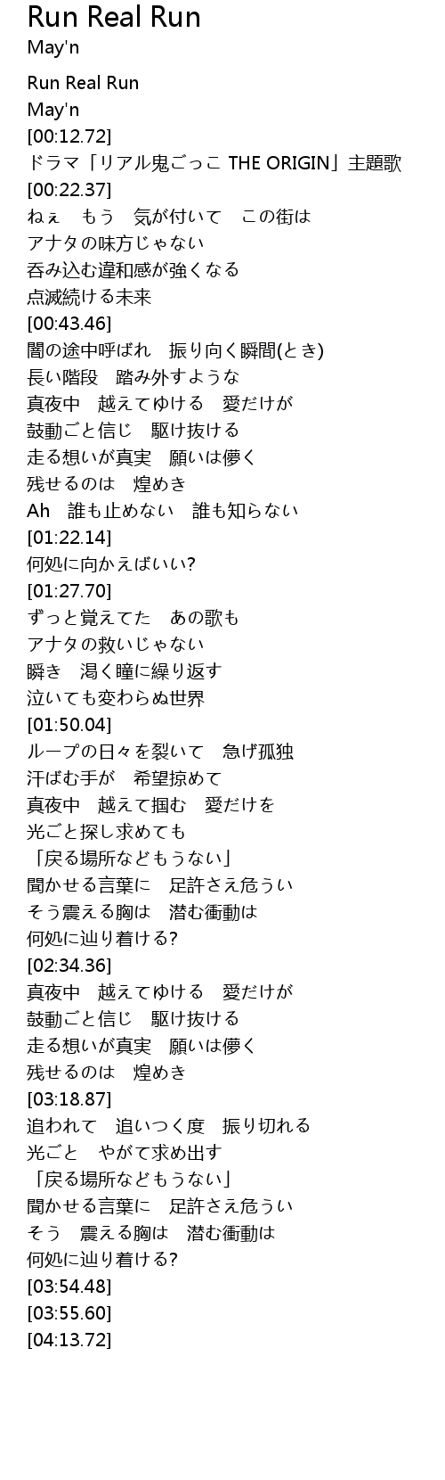 | [00:14.03] | ドラマ「リアル鬼ごっこ THE ORIGIN」主題歌 |