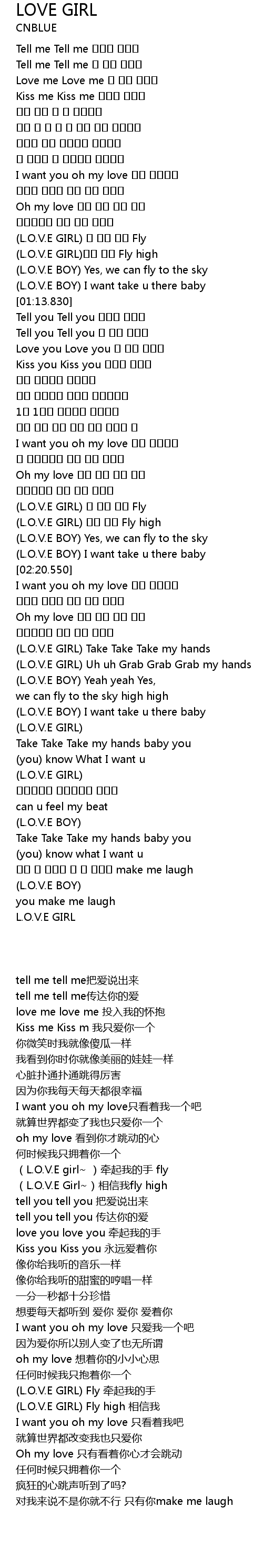 | [02:50.290] | L. O. V. E GIRL Uh uh Grab Grab Grab my hands |