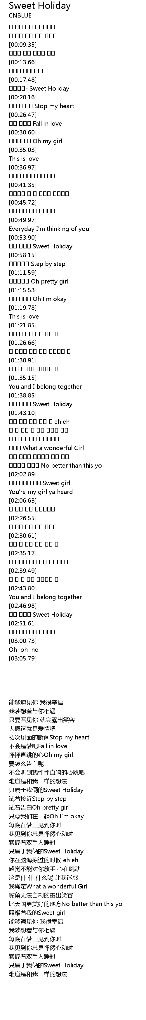 | [00:18.73] | 씨엔블루- Sweet Holiday |