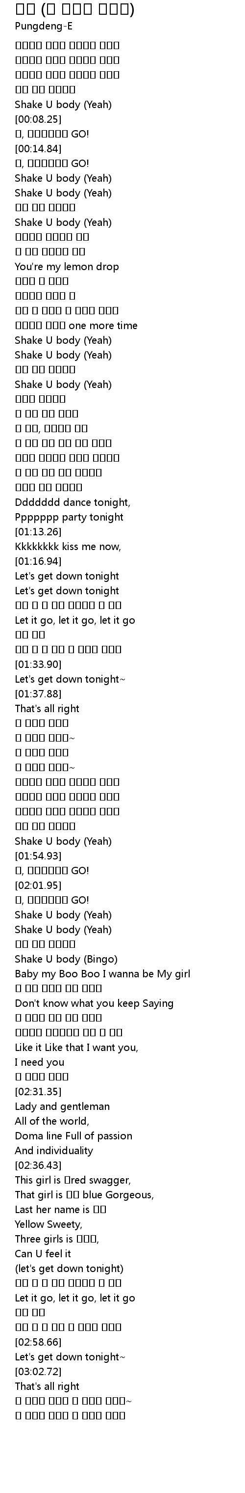 | [02:15.19] | Shake U body (Bingo) |