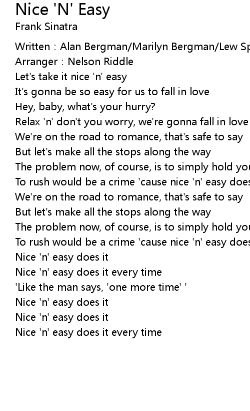 | To rush would be a crime 'cause nice 'n' easy does it every time | |