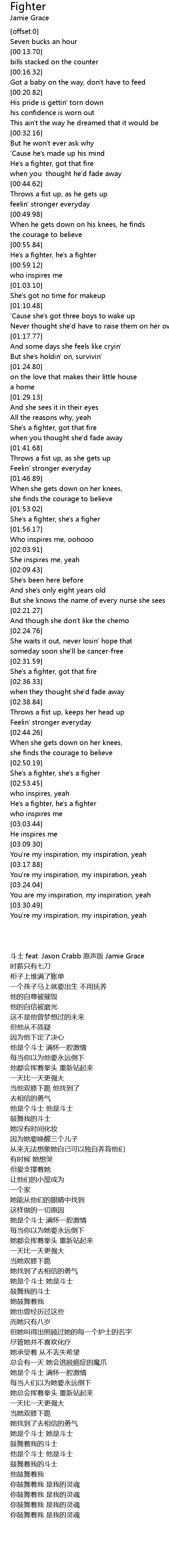 [00:00.34] 斗士 feat. Jason Crabb 原声版 Jamie Grace
