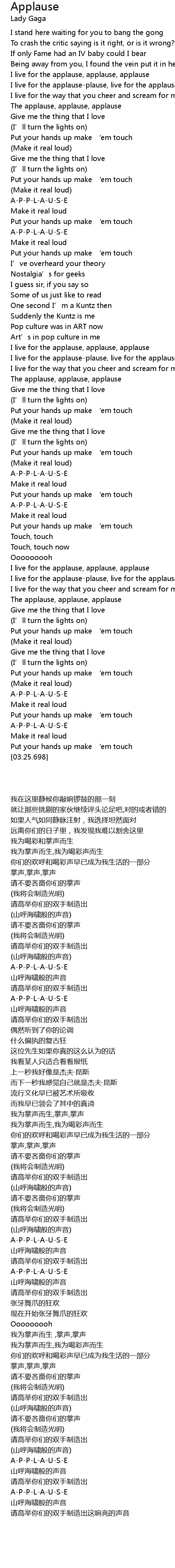 | [01:48.690] | 我为掌声而生,掌声,掌声 |