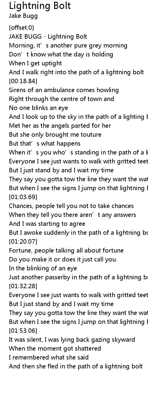 | [00:00.96] | JAKE BUGG Lightning Bolt |