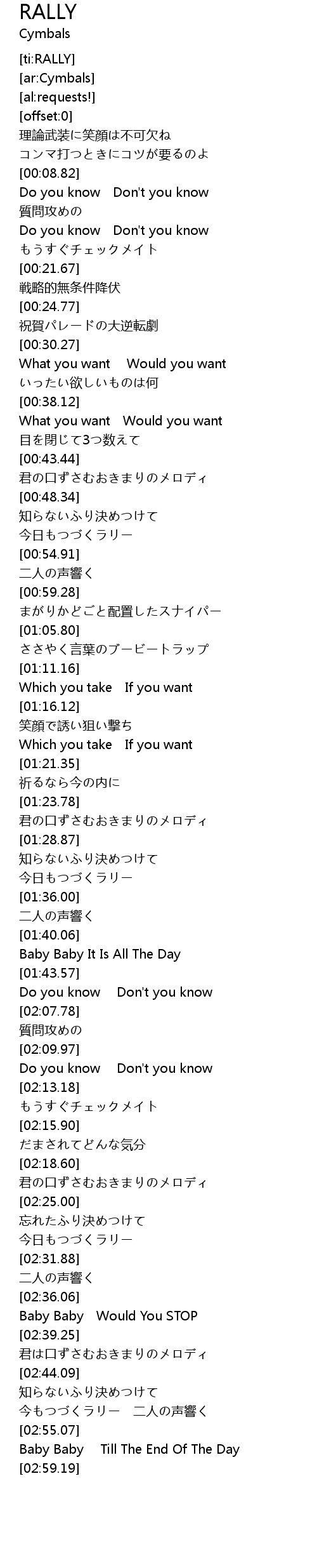 | [02:37.71] | Baby Baby Would You STOP |